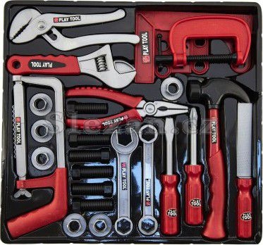 Propracovaná sada nářadí z plastu je u dětí velmi oblíbenou hračkou, zejména potěší malé kutily, kteří si s nářadím vyhrají celý den a mohou pomáhat svému tatínkovi při drobných opravách. Sada obsahuje spoustu různých druhů nářadí. Rozměry balení 36 x 33 x 4 cm. Vhodné pro děti od 3 let.