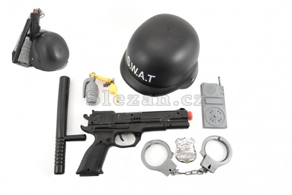 Dětský SWAT set se samopalem a přilbou. Tuto sadu jistě uvítá každý malý policista či bojovník.Vhodné pro děti od 3 let.