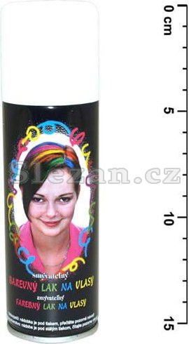 Spray na vlasy bílý - Chceš si vytvořit cool účes na párty? Tak neváhej a kup si tento super spray! Spray se používá k barvení vlasů a paruk. NÁVOD K POUŽITÍ: Skladujte a používejte za pokojové teploty. Před použitím dobře protřepejte. Držte lahvičku rovně a stříkejte v krátkých intervalech ze vzdálenosti 20 cm. Vyhněte se očím a obličeji. Oblečení a syntetické materiály chraňte před uspiněním. Nepoužívejte na odbarvené, barvené nebo natrvalené vlasy. U velmi světlých vlasů mohou tmavé odstíny zanechat po prvním umytí barevný nádech. Nepoužívejte pro děti. Prázdnou nádobku odevzdejte do sběru nebezpečného odpadu. Tato barva je dobře smývatelná šampónem i vodou. Zboží je zdravotně nezávadné. Objem: 125 ml Uvedená cena je za 1 ks.