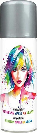 Spray na vlasy stříbrný. Chceš si vytvořit cool účes na párty? Tak neváhej a kup si tento super spray! Spray se používá k barvení vlasů a paruk. NÁVOD K POUŽITÍ: Skladujte a používejte za pokojové teploty. Před použitím dobře protřepejte. Držte lahvičku rovně a stříkejte v krátkých intervalech ze vzdálenosti 20 cm. Vyhněte se očím a obličeji. Oblečení a syntetické materiály chraňte před uspiněním. Nepoužívejte na odbarvené, barvené nebo natrvalené vlasy. U velmi světlých vlasů mohou tmavé odstíny zanechat po prvním umytí barevný nádech. Nepoužívejte pro děti. Prázdnou nádobku odevzdejte do sběru nebezpečného odpadu. Tato barva je dobře smývatelná šampónem i vodou. Zboží je zdravotně nezávadné. Objem: 125 ml Uvedená cena je za 1 ks.
