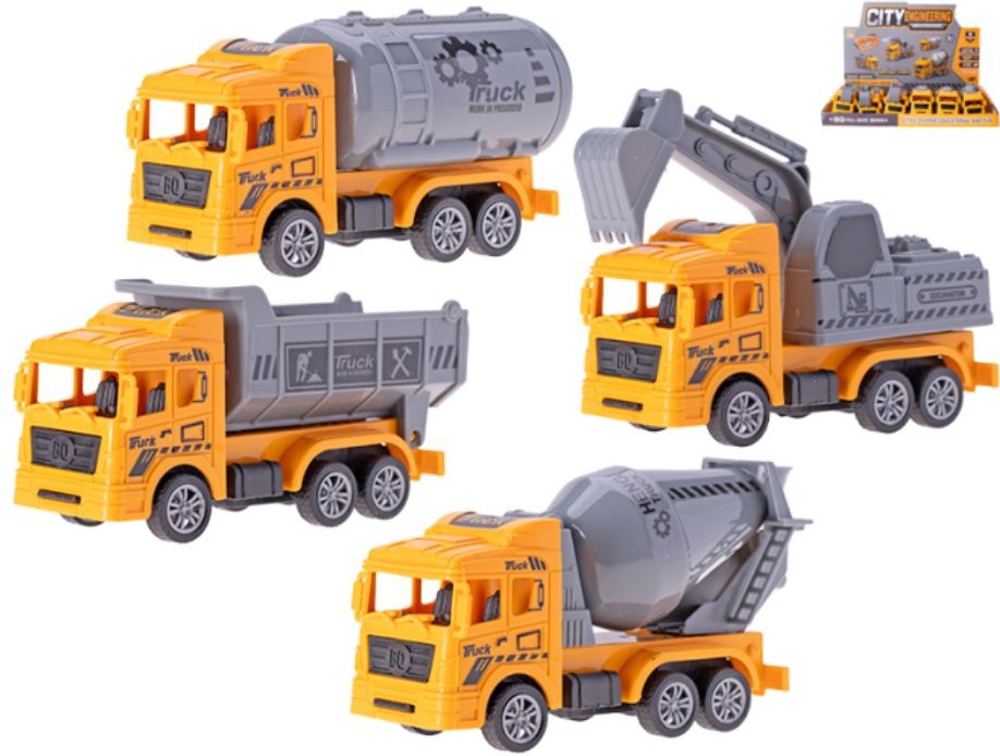 Druhy: cisterna, míchačka, sklápěčka, bagr