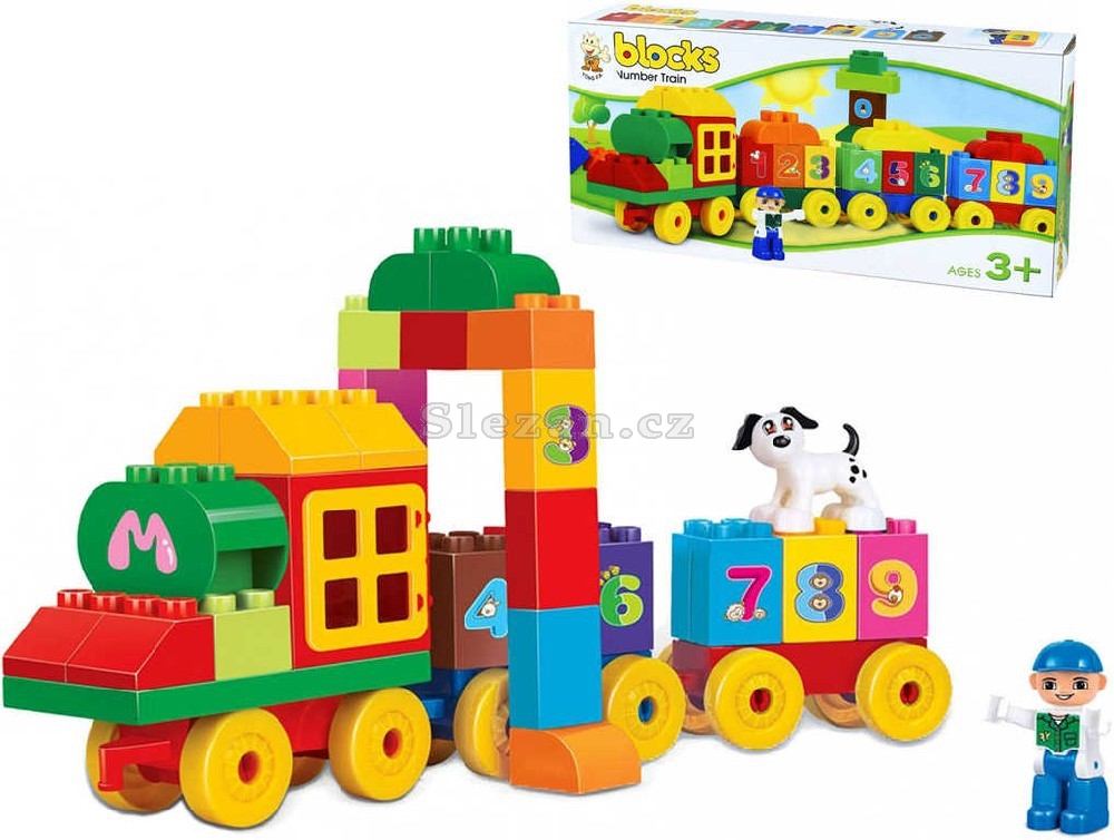 Popis Stavebnice Blocks Vlak baby kostky s čísly a figurkami 62 dílků v krabici plast