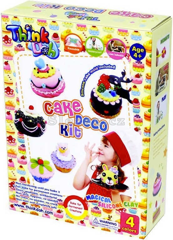 Vyrob si krásný a výborný dortík tak, že ozdobíš silikonový dortový korpus Think Doh modelínou. Až se Ti bude nejvíc líbit, zapeč ho v troubě.