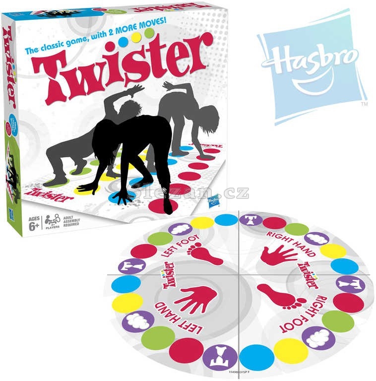 Twister je hra vhodná pro všechny dospělé a děti od 6 let věku. Je to dětská hra která protáhne vaše tělo, zauzluje všechny údy a podpoří dětskou soutěživost. Nová verze oblíbené hry, je doplněná o další úkoly, které si hráči vymýšlejí pro své soupeře. Ten, kdo se udrží nejdéle na nohou, vyhrává!