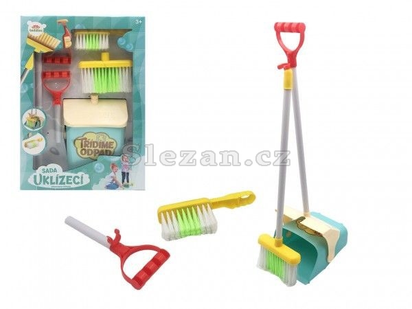 Velká sada pomůcek na úklid pro malé hospodyňky. Uklízecí sada je vyrobena z kvalitního plastu. Sada obsahuje velký smeták, smetáček a odpakový koš (možno připevnit na násadu). Domácí práce se stanou velkou zábavou a vy tak děti naučíte zákadním návykům v úklidu, např. svého dětského pokoje.