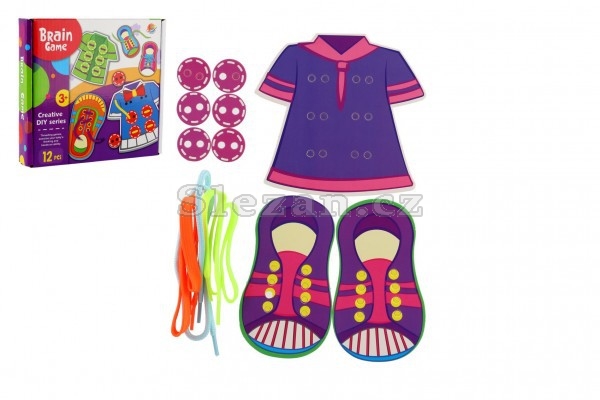 Pomoci Vám může sada, která obsahuje šňůrky/tkaničky, botičky, košili/šaty a knoflíky z pevného kartonu.