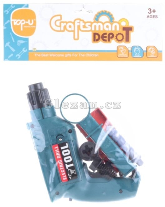 Sada obsahuje plastovou vrtačku na baterie, 2 šroubovací nástavce, vrták, 2 šrouby a matky a další doplňky.