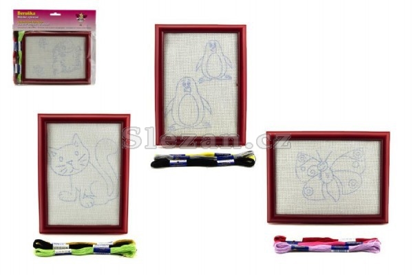 Sada v několika barevných kombinacích bavlnek a rámu, a v několika motivech obrázku.