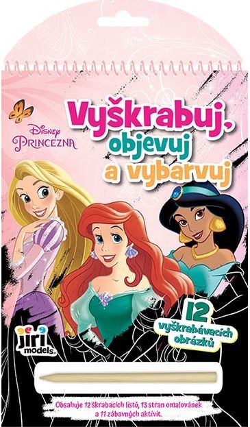 Titul obsahuje 56 stran plných škrabacích obrázků Princezen, omalovánek a zajímavých informací a dřevěné rydlo k vyškrabávání.