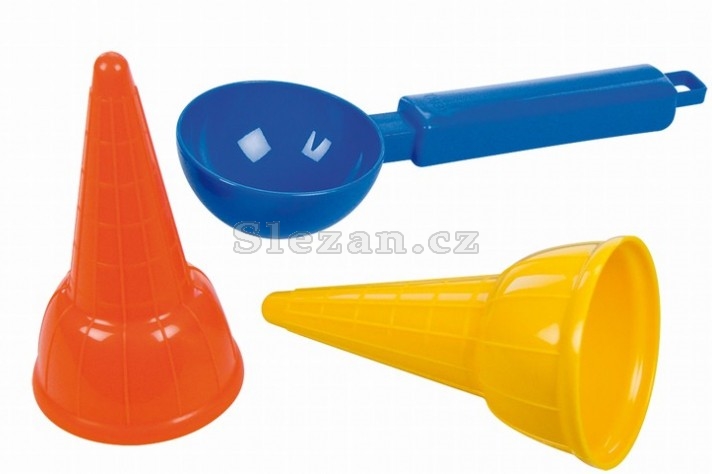 Plastová zmrzlinová sada, která obsahuje 2 zmrzlinové kornouty a naběračku.