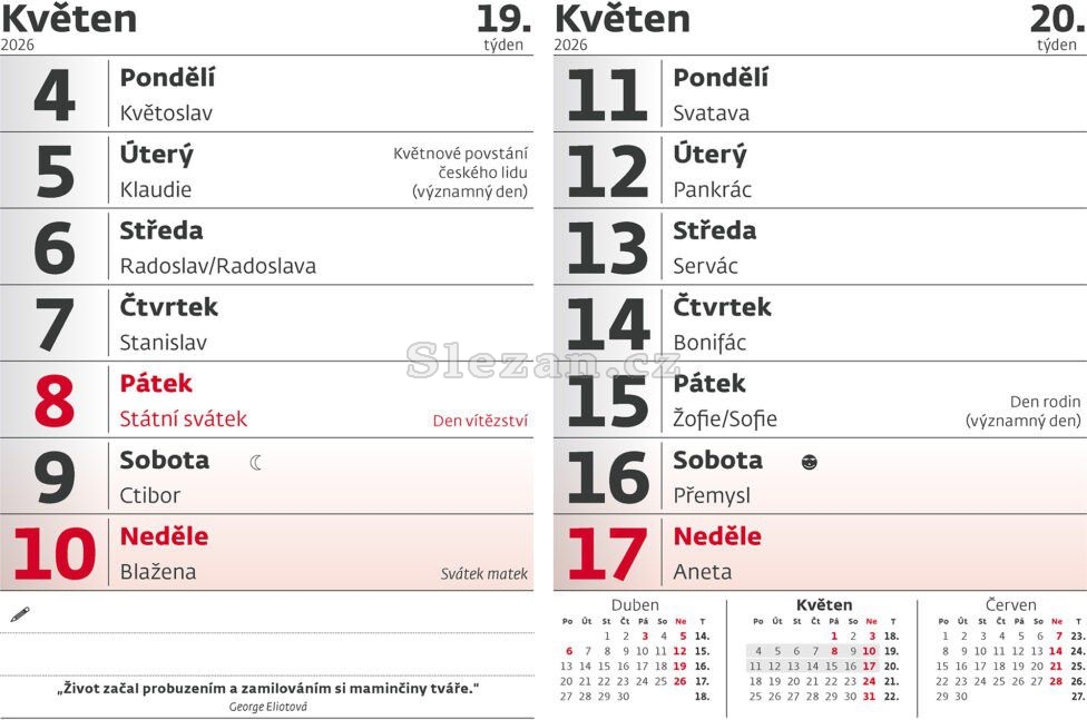 Kalendárium: české dvoutýdenní řádkové s citáty