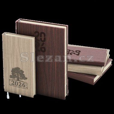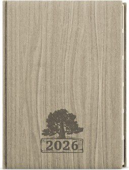 Originální denní diář s přírodním motivem dřeva a ražbou je vyráběný z jemně strukturovaného materiálu s efektním výsekem uvnitř. Má velký prostor pro poznámky a plánování. Výjimečností tohoto diáře je, že soboty i neděle jsou na každé stránce zvlášť.