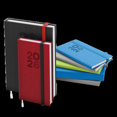 Denní diář formátu A5 vyrobený ze strukturovaného materiálu v oblíbených barvách a s gumičkou. Oblíbená grafika vnitřního bloku Vám pomůže účelně plánovat Vaše dny.
