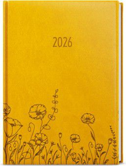 Denní diář A5 vyrobený z měkkého hladkého materiálu v okrové barvě s motivem Květin. Díky formátu a velkému prostoru si můžete efektivně plánovat každý den.