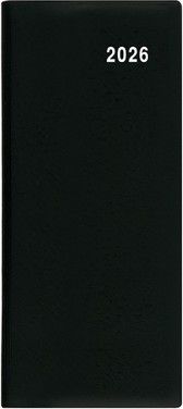 Jednoduchý a praktický měsíční diář vyrobený z jemného hladkého materiálu s polomatným povrchem černé barvy. Ideální pro každého, kdo si oblíbil měkkou šitou vazbu.