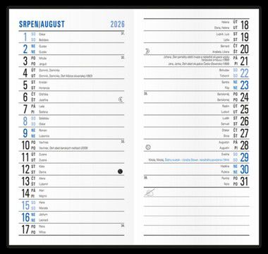 Jednoduchý a praktický měsíční diář vyrobený z jemného hladkého materiálu s polomatným povrchem černé barvy. Ideální pro každého, kdo si oblíbil měkkou šitou vazbu.