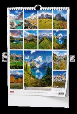 Nástěnný kalendář s obrázky známých hor z celého světa.