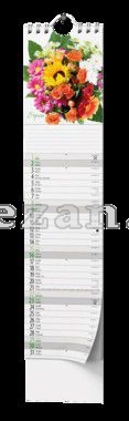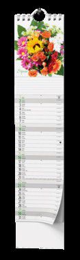 Netradiční nástěnný kalendář ve formátu kravaty s působivými obrázky kytic.