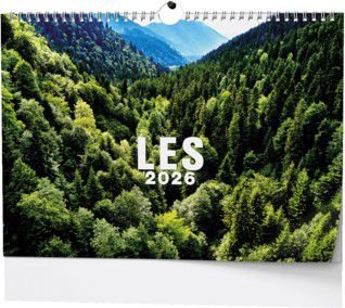Nástěnný kalendář s obrázky působivých lesních scenérií.