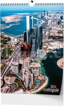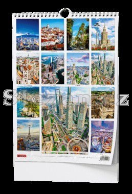 Nástěnný kalendář s krásnými obrázky světových metropolí v trendy stylu.