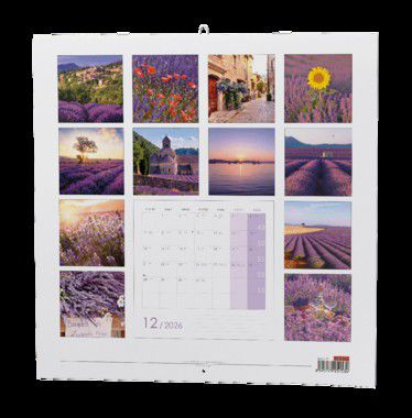 Nástěnný kalendář s měsíčním kalendáriem, v moderním formátu LP desky ve stylu Provence.