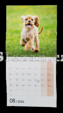 Nástěnný kalendář s měsíčním kalendáriem, v moderním formátu LP desky. Je věnován všem pejskařům.