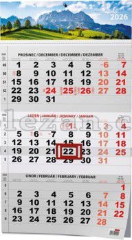 Praktický nástěnný kalendář s tříměsíčním kalendáriem s barevnou laší s motivem přírody a s posuvným jezdcem vhodný do Vaší kanceláře.