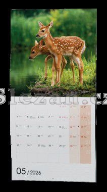Nástěnný kalendář s měsíčním kalendáriem, v moderním formátu LP desky s originálními a vtipnými obrázky zvířat.