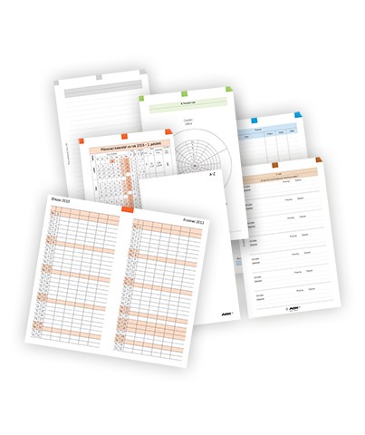 Netermínované formuláře: A-Z adresář, Roční plán, Nezapomeň, Týdenní rozvrh, Roční rozvrh, Klíčové oblasti, Telefonní seznam, Poznámkové listy