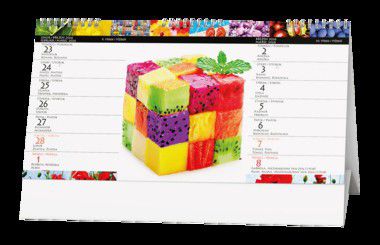 Stolní kalendář se čtrnáctidenním kalendáriem a pestrobarevnými motivy.