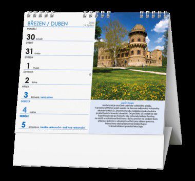 Ideální kalendář za ideální cenu s týdenním kalendáriem a v praktickém formátu s informacemi o hradech, zámcích a památkách naší země.