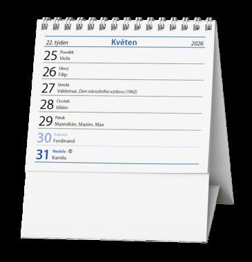 Praktický stolní kalendář s týdenním kalendáriem v mini formátu.
