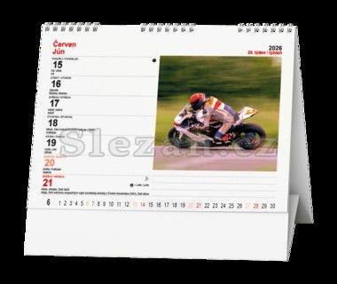 Stolní kalendář s týdenním kalendáriem pro milovníky rychlých motorek.
