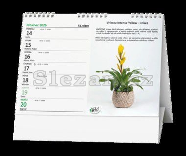 Stolní kalendář s týdenním kalendáriem a s informacemi o péči o pokojové květiny.