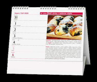 Stolní kalendář s týdenním kalendáriem a s recepty pro oblíbená sladká jídla.