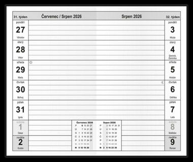 Jednoduchý a praktický týdenní diář vyrobený z jemného hladkého materiálu s polomatným povrchem modré barvy. Ideální pro každého, kdo si oblíbil měkkou šitou vazbu.