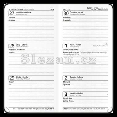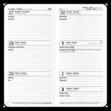 Kapesní týdenní diář v moderním jemném potahu, který imituje semiš. Praktický doplněk do každé kapsy, který Vám pomůže každodenně plánovat Váš volný čas. Díky modernímu potahu se diář stává skvělým doplňkem.