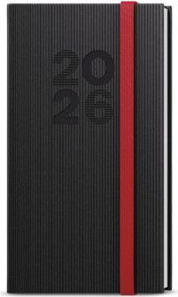 Kapesní týdenní diář v černé barvě ze strukturovaného materiálu a s gumičkou. Jednoduchost, která neomrzí. Moderní doplněk do každé kapsy. Diář má velký prostor pro poznámky a plánování.
