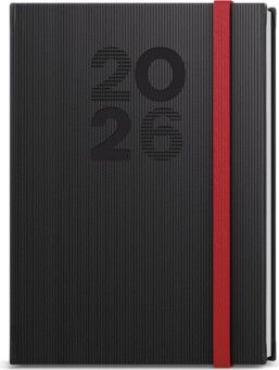Týdenní diář formátu A5 vyrobený ze strukturovaného materiálu v černé barvě a s gumičkou. Oblíbená grafika vnitřního bloku Vám pomůže účelně plánovat Vaše dny.
