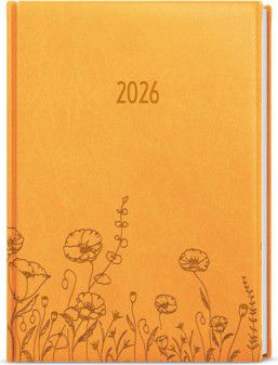 Týdenní diář okrové barvy vyráběný z jemné hladké vivelly s efektní ražbou motivu Květin. Formát A5 je vhodný do tašky a má velký prostor pro poznámky a plánování.