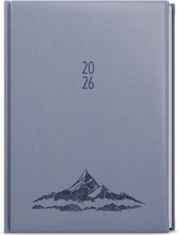 Týdenní diář v šedé vivelle s krásnou ražbou s motivem Hor. Diář v oblíbeném formátu s velkým prostorem pro poznámky a plánování.