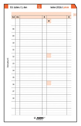 pravá strana od mechaniky: rozvržení celého dne od 8 do 18 hodin