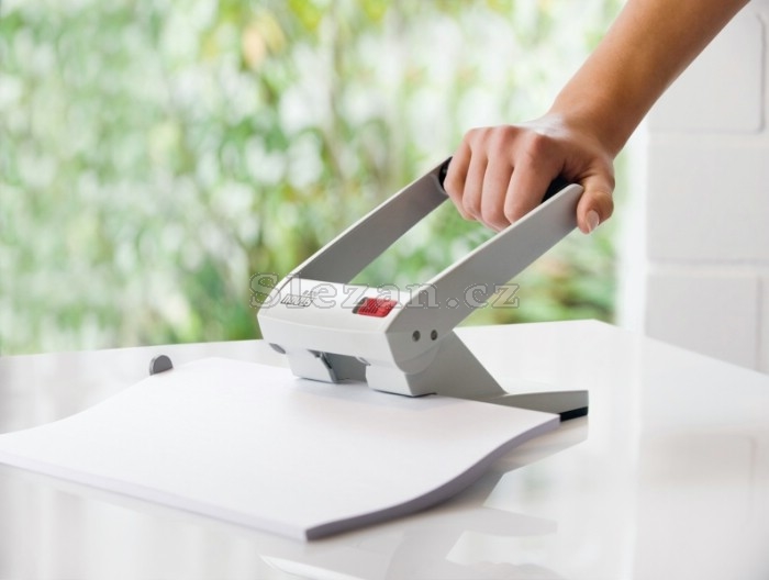 Tento kvalitní a velmi lehký děrovač z magnézia Hi-Tec proděruje i nejsilnější brožury a katalogy – a to při nejjednodušší obsluze, vysoké výkonnosti a s velkou lehkostí. Díky optimálnímu přenosu síly dokáže až 70 listů standardního papíru. Děrovačka NOVUS B 270 vyniká dokonalou ergonomií a krásným designem a mimoto přesvědčí také možností aretace horního dílu v dolní poloze pro úsporu místa při ukládání. Dorazová lišta při nastavování spolehlivě zapadne na vyznačených formátech. Rozteč děr: 80 mm, Výkon: 70 listů standardního papíru (80 g/m2), Barva: světle šedá , Materiál: Hi-tec magnézium