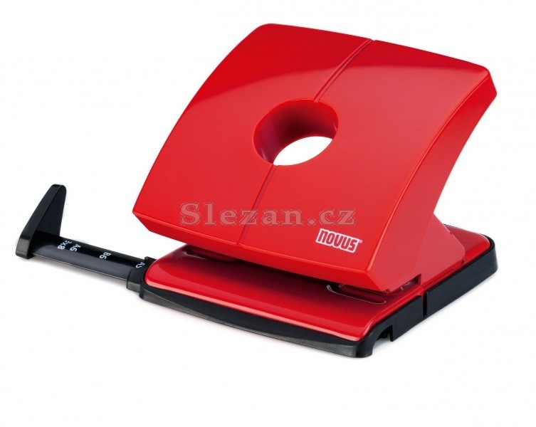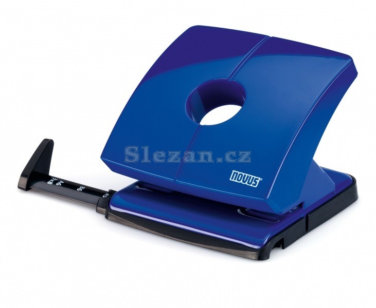 Silný kancelářský děrovač s aretací spodního dílu a příložníkem. Celokovový s plastovým povrchem. Rozteč děr 8 cm. Max. 25 listů. Záruku 10 let.