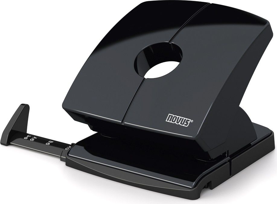 Výkonná kancelářská děrovačka pro profesionální použití. Potištěné posuvné pravítko pro snadné formátování. Dělené výklopné dno z měkké pryže usnadňuje manipulaci s odpadem. Celokovová s plastovým opláštěním.