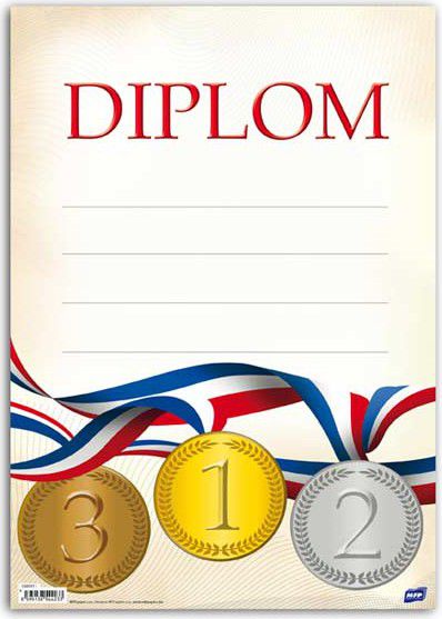 Barevný dětský diplom s obrázkem medailí. Za každý dosažený úspěch je potřeba dostat písemnou listinu. Určený pro sportovní aktivity. Diplom obsahuje 4 řádky kam můžete napsat jméno, umístění, za co diplom dostal, popřípadě kdo jej uděluje. Formát: A4 Gramáž: 300 g Druh papíru: křídový, matný Uvedená cena je za 1 ks.