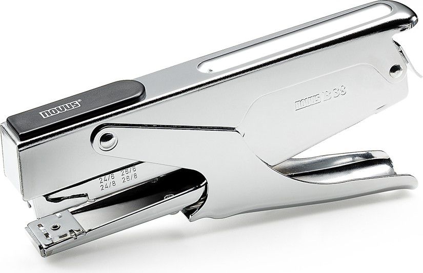 Spolehlivé kancelářské sešívací kleště pro profesionální použití . Celokovový výrobek. Dvojité vedení sponek pro přesné sešívaní. Otočná matricepro otevřený a uzavřený způsob sešívání.