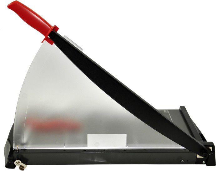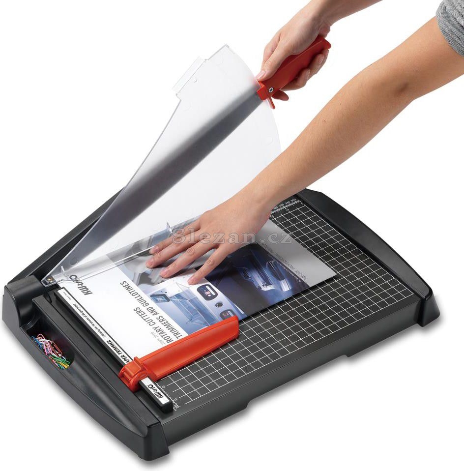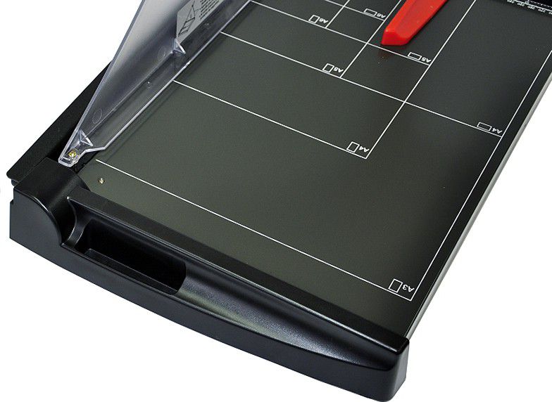 Výkonná páková řezačka A3 s kovovým stolem a plastovým ochranným krytem. Na stole je lišta s měřítkem, zadním dorazem a jsou na něm vyznačeny běžné DIN formáty. Délka řezu je 449 mm a maximální kapacita 20 listů (70g/m). Vhodná pro kanceláře a na úpravu fotek z dovolené.