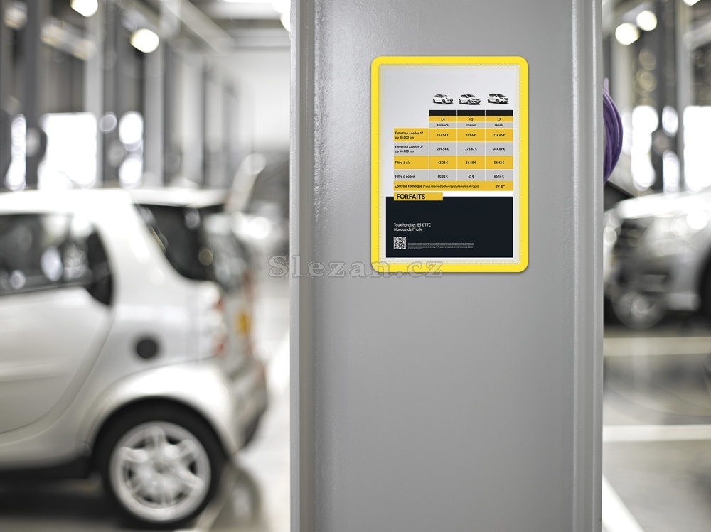 Prezentujte dokumenty na všech hladkých kovových magnetických plochách v obchodech, kancelářích, na magnetických tabulích, v továrnách, dílnách, na skříních nebo přepážkách.