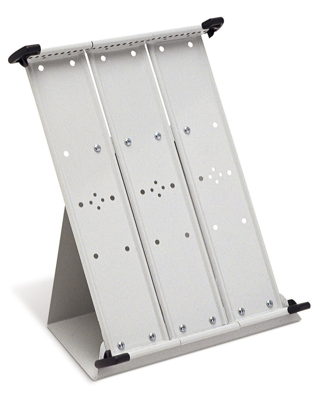 Pultový kovový stojan pro uchycení 30 kapes s úchyty A4 na výšku nebo A3 na šířku. Protiskuzový podstavec dává stojanu velkou stabilitu. Je vhodný na každý kancelářský stůl, pracovní plochu, pult recepce - informace jsou vždy a rychle přístupné. Součástí stojanu jsou 4 aretační zarážky, které zajišťují správné držení kapes. Kapsy s úchyty nejsou součástí dodávky a je nutné dokoupit samostatně. Barva: světle šedá RAL 7035
